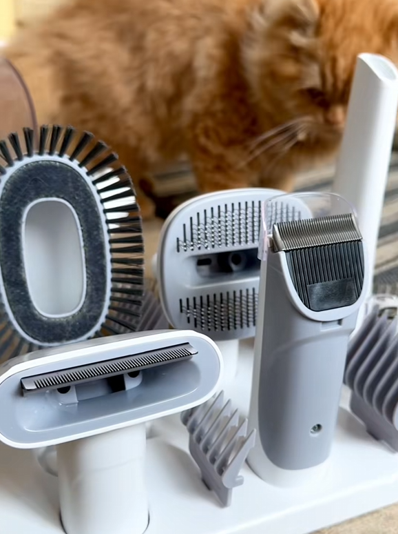 The MaxiGroom Pro ships complete with: the vacuum unit, the electric clipper, all 6 attachment combs (3/6/9/12/15/18mm), a brush holder, a cleaning brush, an additional attachment, and a full instruction manual. Everything you need is included β no extra purchases required.