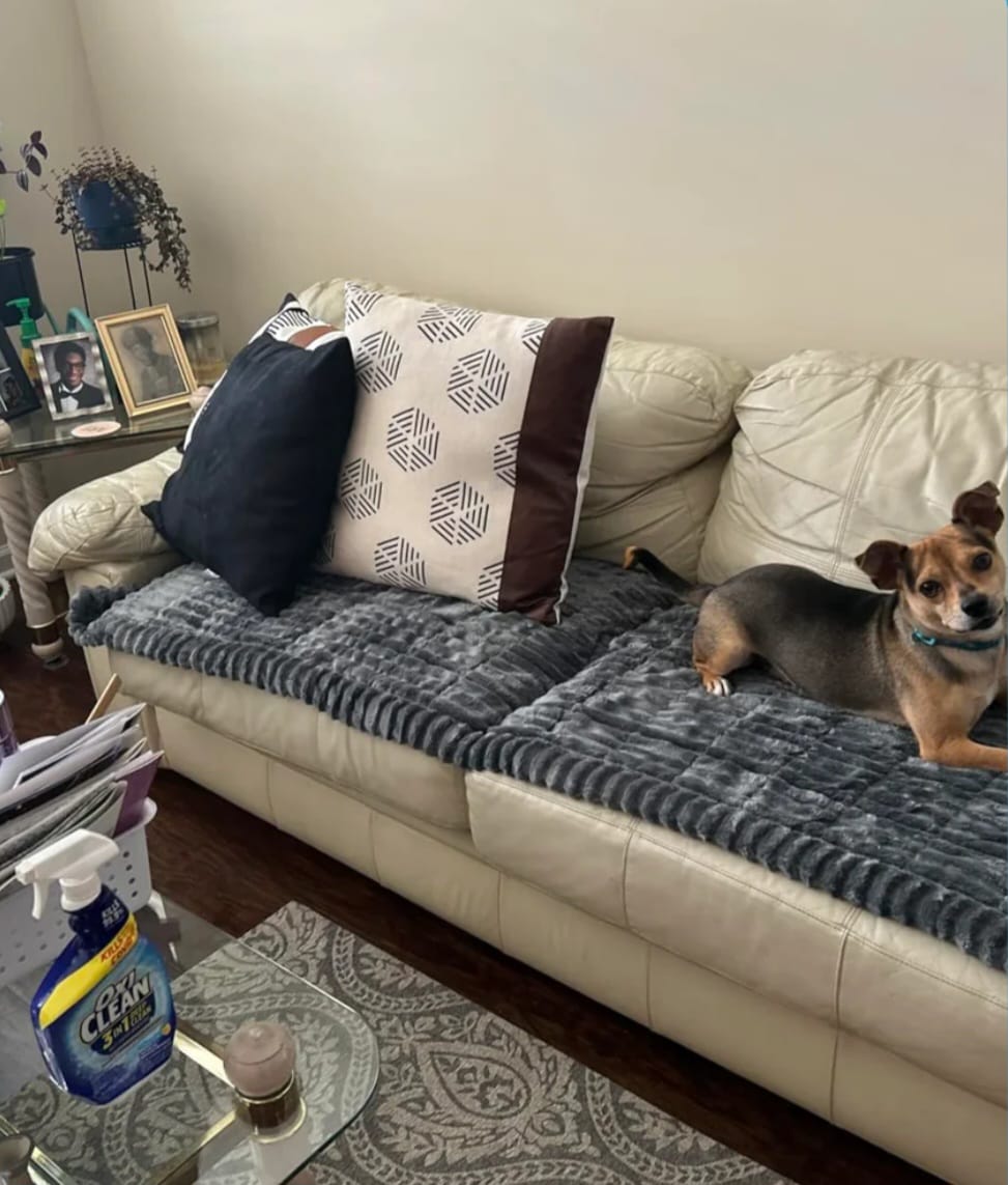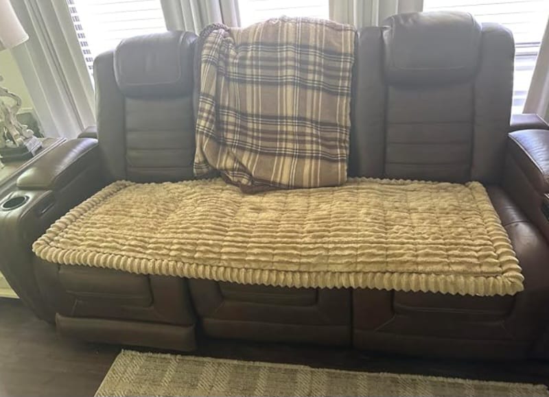 "The quilted material is thick, comfy, and doesn’t slide off leather. I wash it once a week, and it dries quickly without losing shape. It’s saved us from daily vacuuming and made the whole living room look tidier. Honestly, it’s one of those small purchases that makes a big difference."