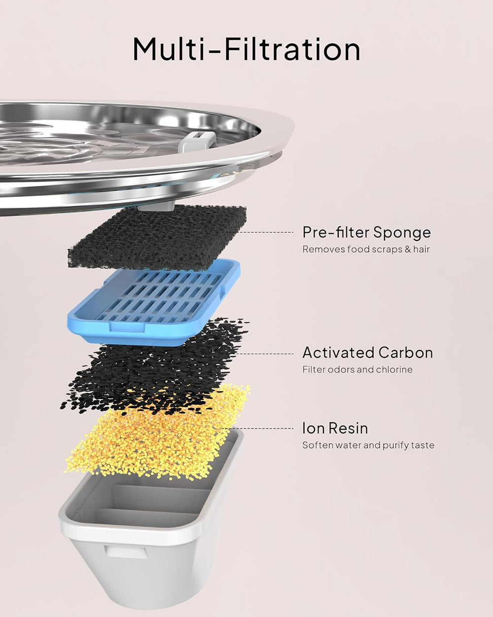 Every 2–4 weeks is ideal, depending on water quality and number of pets. The built-in indicator helps you keep track easily.